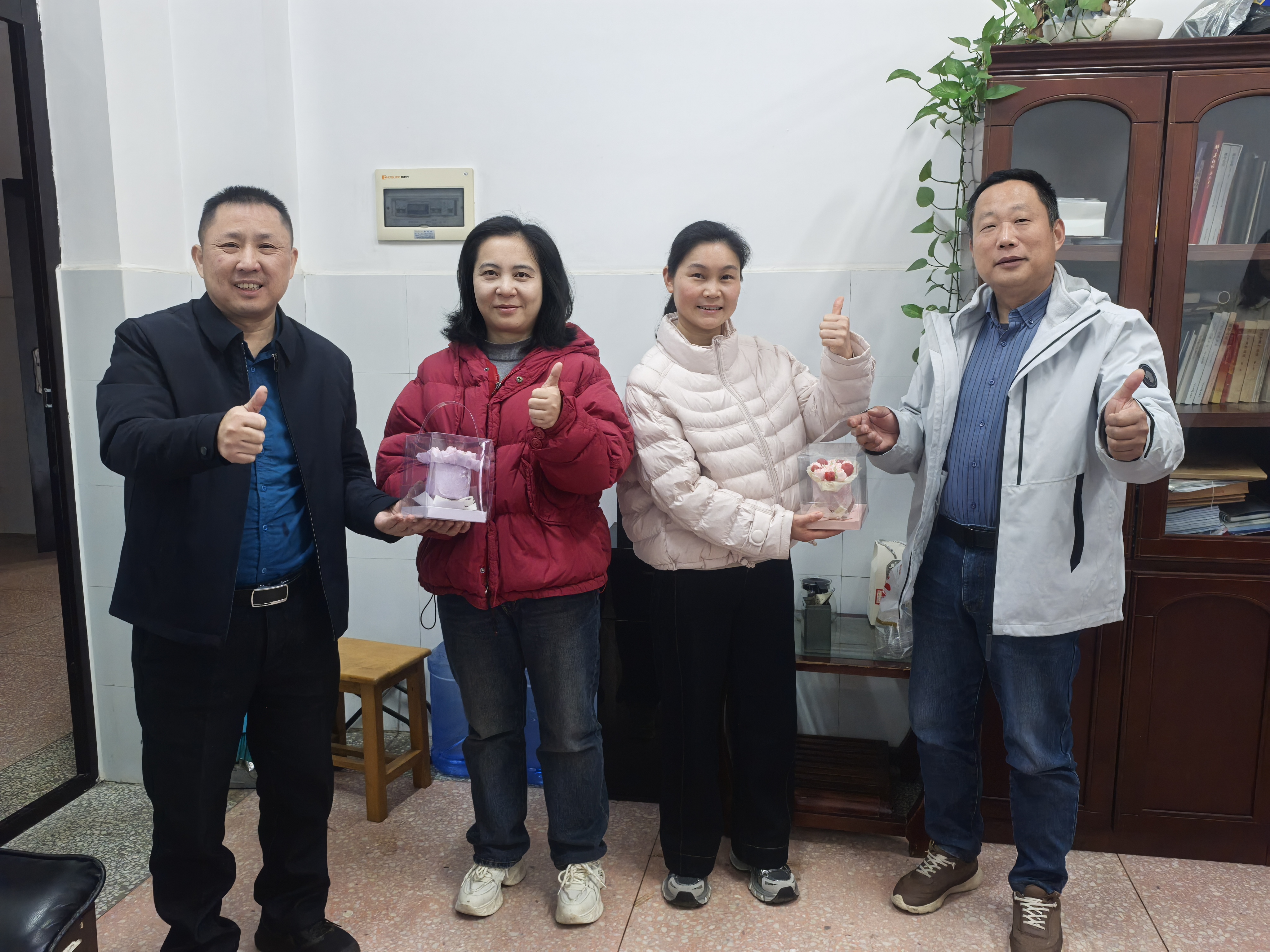 赛场上的激情褪去,归来的温暖悄然而至。为了让女教师们在节日里感受到来自学院大家庭的关怀与温度,活动结束后,学院工会精心策划了一场温馨的惊喜。学院工会干部们手捧花束蛋糕,逐一送到每一位女教职工的手中。接过礼物的老师们脸上洋溢着惊喜与感动的笑容。