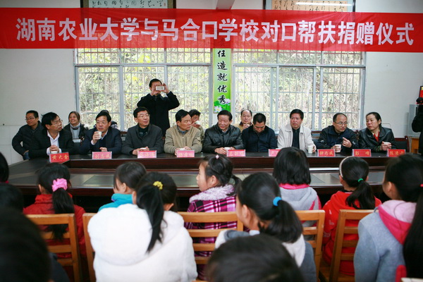 12月9日,湖南农业大学党委副书记、工会主席卢向阳带领校工会、政工、后勤集团、宣传部等一行十二人,来到了边远山区桑植县马合口白族乡中心学校进行“一对一,手拉手”对口帮扶。此次活动还特地邀请了省教育工会主席高新明、副主席杨舜桃、普教部部长彭峰等领导支持指导。