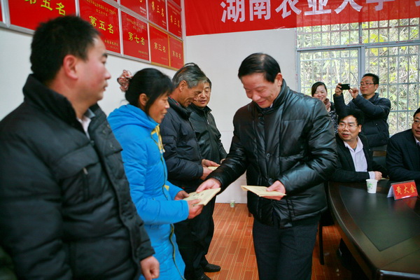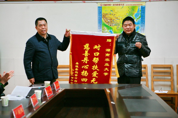 仪式上,省教育工会主席高新明向马合口中心学校五位家庭困难的教师发放了慰问金。卢向阳代表湖南农业大学向家庭困难的35位同学每人发放了资助金。学生代表做了发言,表示一定会努力学习不负厚望。马合口中心学校对农大的长期支持和无私帮助表示衷心感谢,并赠送了锦旗。
