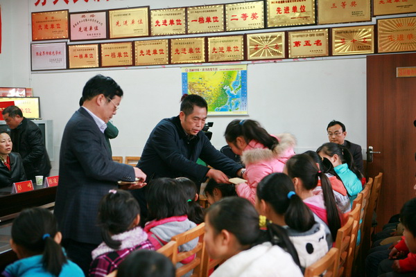 上午10点,校工会常务副主席刘志成主持了简短的捐赠仪式。桑植县教育局工会主席廖磊致欢迎词。卢向阳副书记发表了热情洋溢的讲话。卢向阳指出,早在上世纪90年代中期,湖南农业大学与马合口中心学校就结下了深厚的友谊,学校先后派出8名骨干教师对马合口学校进行支教工作。1997年农大与其他支教单位一起还修建了一栋三层楼的小学校舍。今年农大又捐赠了40多万元的物资和现金。卢向阳希望在各界爱心人士的关心支持下,马合口中心学校越办越好,让每位同学都能像习近平总书记要求的“共同享有人生出彩的机会,共同享有梦想成真的机会,共同享有同祖国和时代一起成长与进步的机会”。