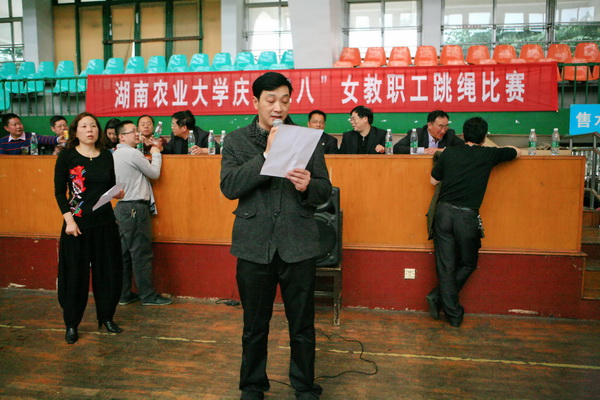 为庆祝“三八”国际劳动妇女节,3月7日下午,校工会在湖南农业大学体育馆隆重举办了庆“三八”女教职工跳绳比赛。