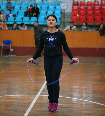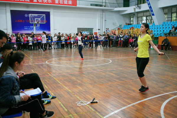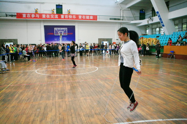 公管法学院的曾鑫以1分钟230个的好成绩获得个人冠军;东方科技学院的曹丹获得亚军;获得季军的是农学院的罗芬;并列第四名的是后勤服务集团胡艳芳、李洪林;并列第六名的分别是理学院的蒋莉,经济学院的郑璇、教育学院的吴瑛、图书馆的张畅。